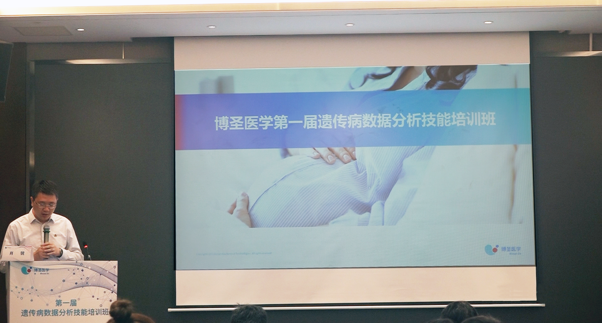 博圣生物副總裁、博圣醫學首席科學家肖銳博士為培訓班開幕致辭。他提到,人類遺傳學在過去20年有了極大發展,特別是二代測序(NGS)技術的進步強力推動了基因組學的發展,提升了臨床對遺傳疾病的檢測及診斷能力;然而,通過NGS平臺獲得的測序數據信息龐大,需要有效的生信分析策略及復雜的變異位點判讀和遺傳咨詢才能將結果應用到臨床輔助診斷中,而生信分析及變異判讀是高技術壁壘的環節,是基因檢測流程的核心難點所在。
