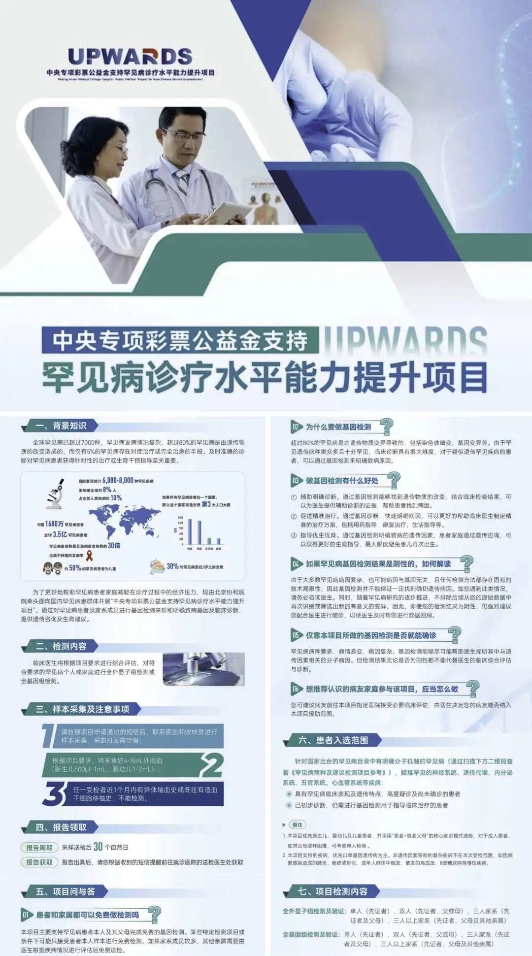 項目將面向國內(nèi)罕見病患者群體提供免費基因檢測、資助協(xié)作網(wǎng)醫(yī)院開展罕見病病例多學(xué)科診療(MDT)、支持罕見病醫(yī)生開展診療能力培訓(xùn),以患者為中心、全方位提升全國罕見病診療水平和實施能力。